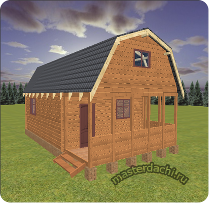 Вместительный дом 5 на 6 с террасой подходит для просторных участков с обильной растительностью. Такое строение не затеряется на обжитой территории, а лишь украсит ее: аккуратные брусовые стены и легкая терраса выглядят весьма эффектно.