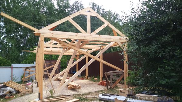 Строительство деревянного навеса для авто производится по следующей схеме: